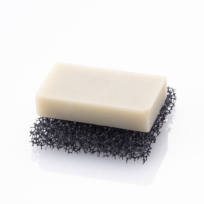 シャンプーバーを手のひらで泡立てます。泡で包み込むように頭皮を指の腹でやさしくマッサージしながら洗います。髪全体にも石けんの泡を行き渡らせてやさしく洗います。
